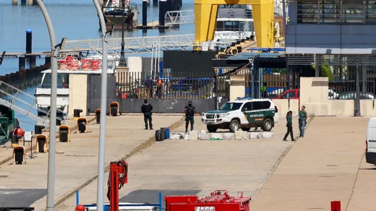 El alijo ha sido trasladado durante la mañana de este miércoles al puerto de Huelva, concretamente a la base marítima del Servicio Marítimo de la Guardia Civil, en el Muelle de Levante, donde se ha desplegado un amplio dispositivo policial para proceder a la descarga y custodia de los fardos, con la presencia de numerosos agentes y una notable actividad operativa. En el lugar se observa igualmente la presencia de efectivos de la Guardia Civil, todos ellos fuertemente armados y equipados con pasamontañas y chalecos antibalas, pertenecientes a la Unidad de Seguridad Ciudadana (USECIC).